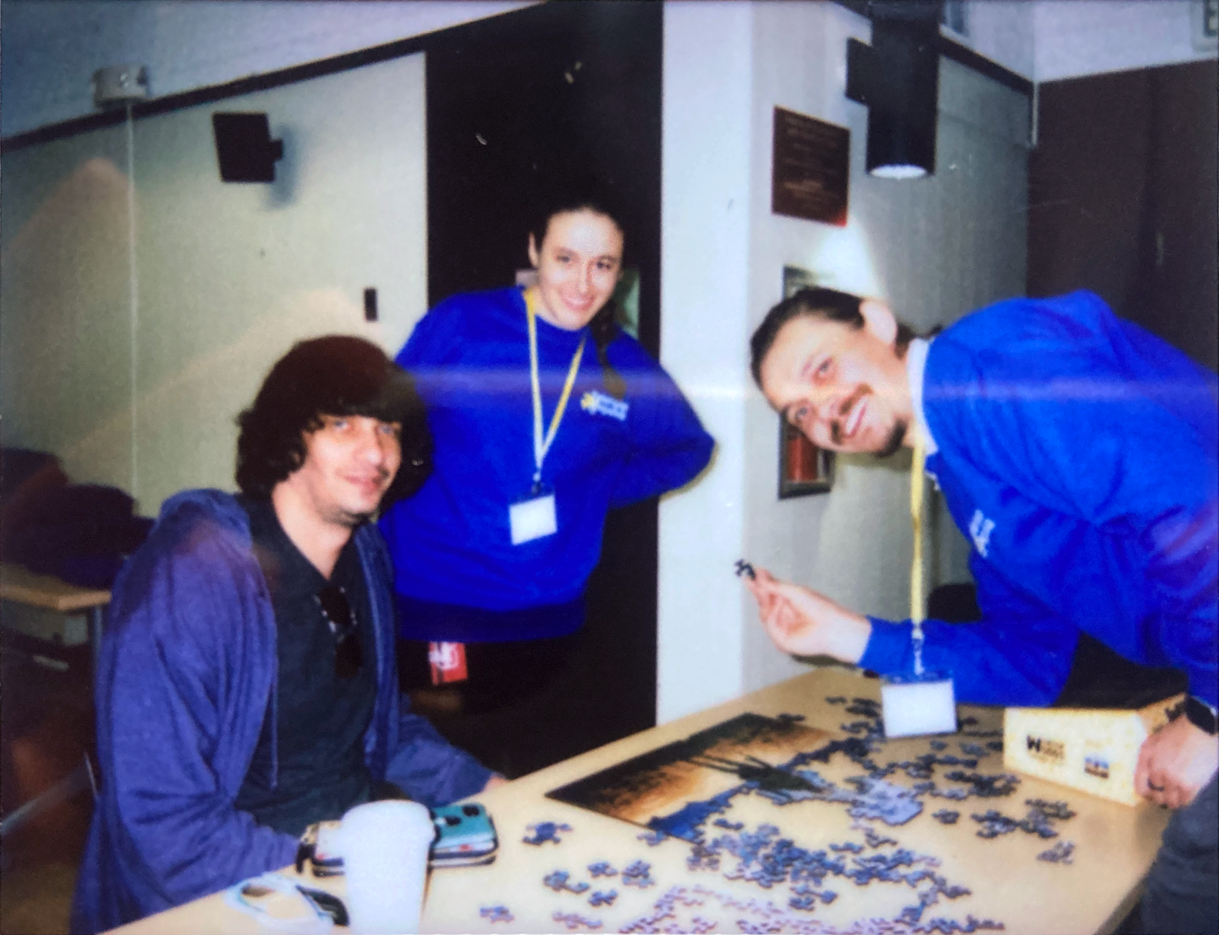 Here the team is hard at work completing a jigsaw puzzle memorializing the famous line delivered by a Ukrainian soldier to a Russian warship approaching Snake Island. The puzzle was made in Kyiv, and can be purchased here. (Image digitized from a polaroid – note the retro look)